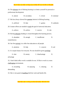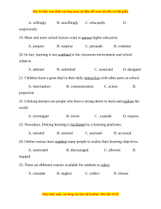 23. Nowadays, lifelong learning is facilitated by e-learning platforms. A. insisted B. assisted C. assessed D. accessed