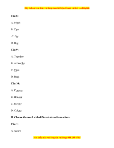 II. Choose the word with different stress from others. Câu 1: A. secure