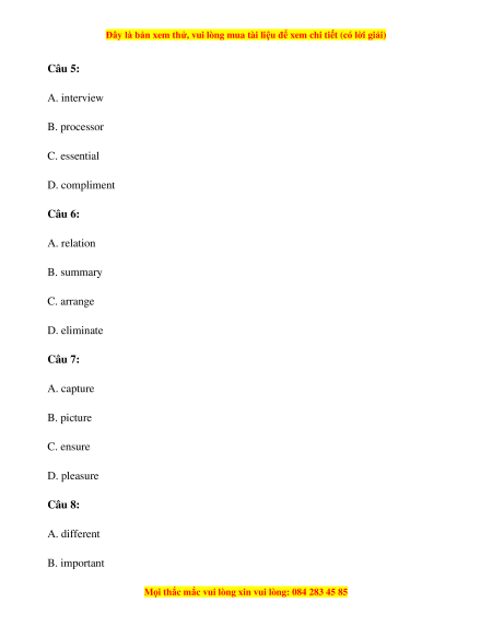 Đây là bản xem thử, vui lòng mua tài liệu để xem chi tiết (có lời giải)
