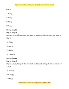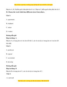 Đáp án A, C, D phần gạch chân phát âm là /ɒ/. Đáp án B phần gạch chân phát âm là /ə/ Câu 8: A. Maintain B. Contain C. Obtain