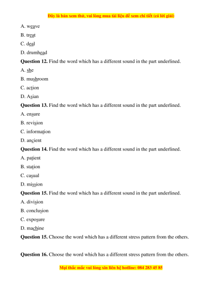 Đây là bản xem thử, vui lòng mua tài liệu để xem chi tiết (có lời giải)