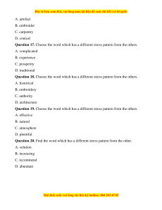 Question 18. Choose the word which has a different stress pattern from the others. A. historical B. embroidery C. authority D. architecture