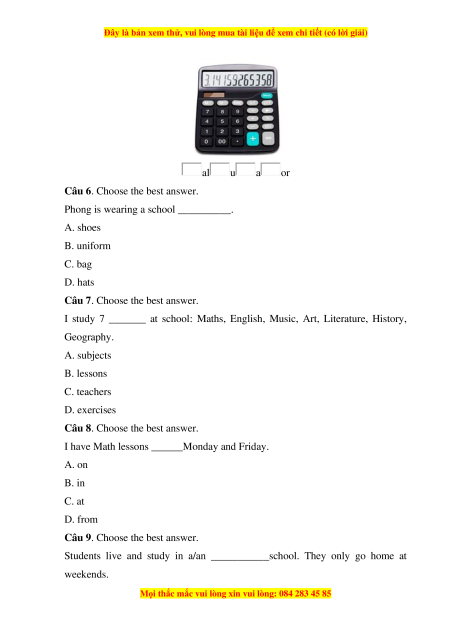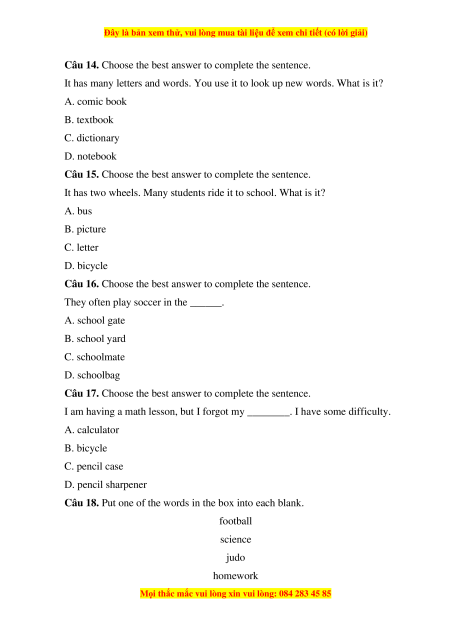 Đây là bản xem thử, vui lòng mua tài liệu để xem chi tiết (có lời giải)