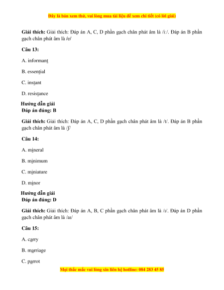 Đây là bản xem thử, vui lòng mua tài liệu để xem chi tiết (có lời giải)