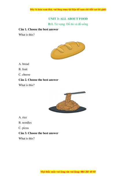 Câu 2. Choose the best answer What is this? A. rice B. noodles C. pizza