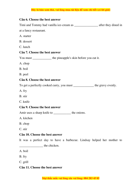 Câu 11. Choose the best answer