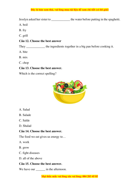 Câu 4. Choose the best answer What is this? A. salad B. soda C. soup