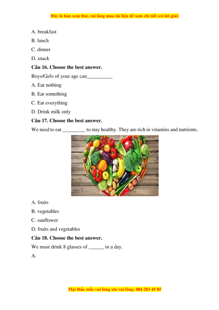 Câu 15. Choose the best answer.
