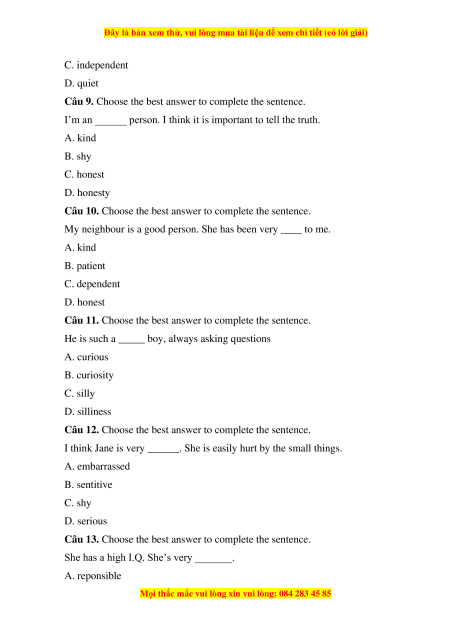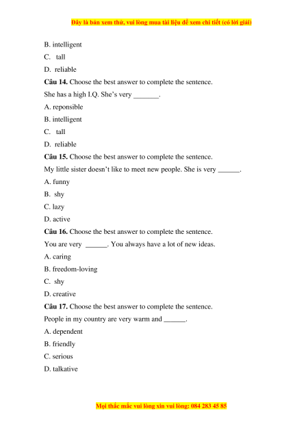 Đây là bản xem thử, vui lòng mua tài liệu để xem chi tiết (có lời giải)
