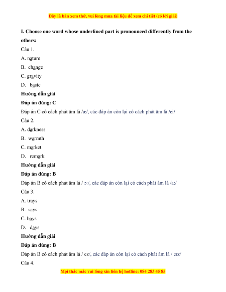 Đây là bản xem thử, vui lòng mua tài liệu để xem chi tiết (có lời giải)