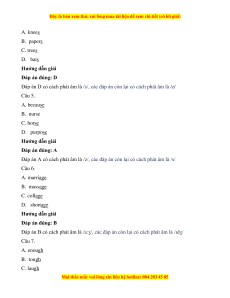 Đáp án B có cách phát âm là /a:ʒ/, các đáp án còn lại có cách phát âm là /ɪdʒ/ Câu 7. A. enough B. tough C. laugh