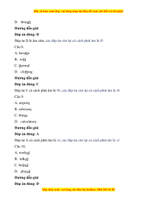 Đáp án D là âm câm, các đáp án còn lại có cách phát âm là /f/ Câu 8. A. breathe B. with C. thermal D. clothing Hướng dẫn giải Đáp án đúng: C