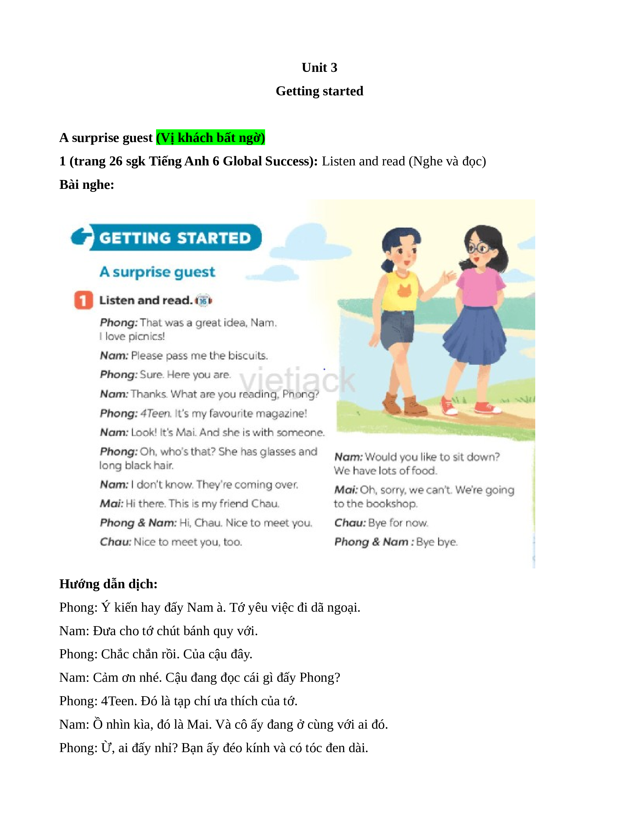 1 (trang 26 sgk Tiếng Anh 6 Global Success): Listen and read (Nghe và đọc) Bài nghe: Hướng dẫn dịch: