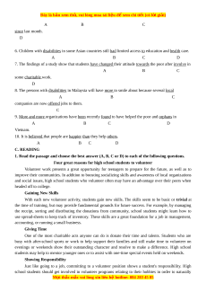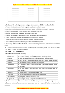 Trắc nghiệm Unit 4: Caring for those in need Tiếng Anh 11 - Nguyễn Ngọc Châu