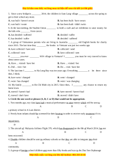 9. The last time I ________ to Ha Long Bay was ten years ago. Everything ________ a lot there since then, I think. A. have went / changed B. went / changed C. went / has changed D. went / was changing