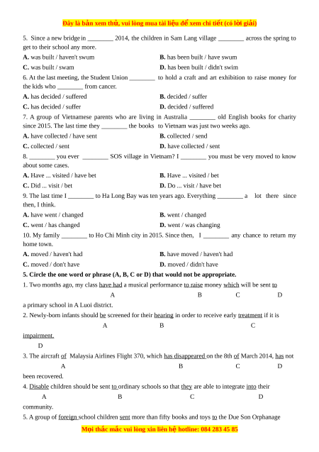Tài liệu được cập nhật liên tục trong gói này từ nay đến hết tháng 6/2023. Chúng tôi đảm bảo đủ số lượng đề đã cam kết hoặc có thể nhiều hơn, tất cả có BẢN WORD, LỜI GIẢI CHI TIẾT và tải về dễ dàng.