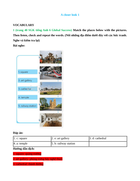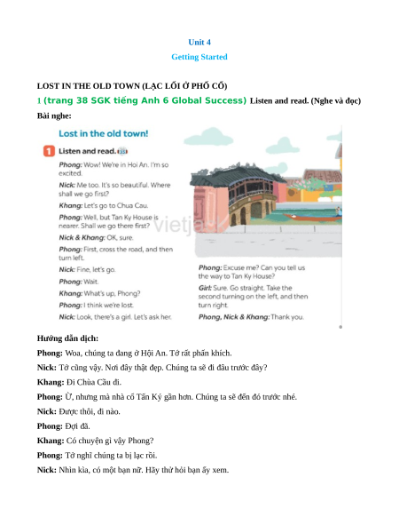1 (trang 38 SGK tiếng Anh 6 Global Success) Listen and read. (Nghe và đọc) Bài nghe: Hướng dẫn dịch: