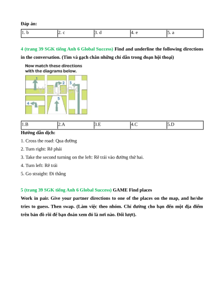 4 (trang 39 SGK tiếng Anh 6 Global Success) Find and underline the following directions