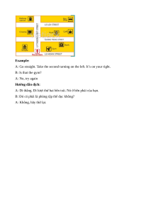 3. Take the second turning on the left: Rẽ trái vào đường thứ hai. 4. Turn left: Rẽ trái 5. Go straight: Đi thẳng