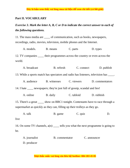 Đây là bản xem th , vu ử i lòng mua tài li u ệ đ xe ể m chi ti t ế (có l i ờ gi i ả ) Unit 4. THE MASS MEDIA Part I. PHONETICS