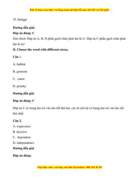 Đây là bản xem thử, vui lòng mua tài liệu để xem chi tiết (có lời giải)