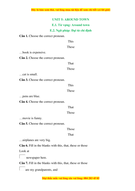Câu 1. Choose the correct pronoun. This These …book is expensive.