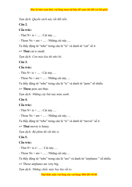 Tạm dịch: Quyển sách này rất đắt tiền. Câu 2. Cấu trúc: