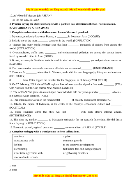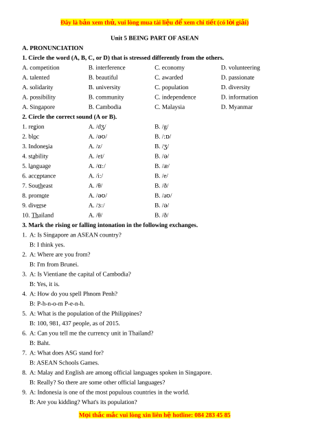 Unit 5 BEING PART OF ASEAN A. PRONUNCIATION