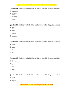 Question 18. Find the word which has a different sound in the part underlined. A. what B. yogurt