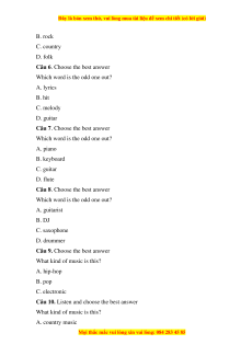 Câu 10. Listen and choose the best answer What kind of music is this? A. country music