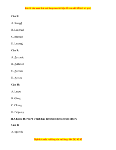 II. Choose the word which has different stress from others. Câu 1: A. Specific