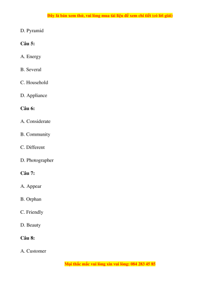 Đây là bản xem thử, vui lòng mua tài liệu để xem chi tiết (có lời giải)