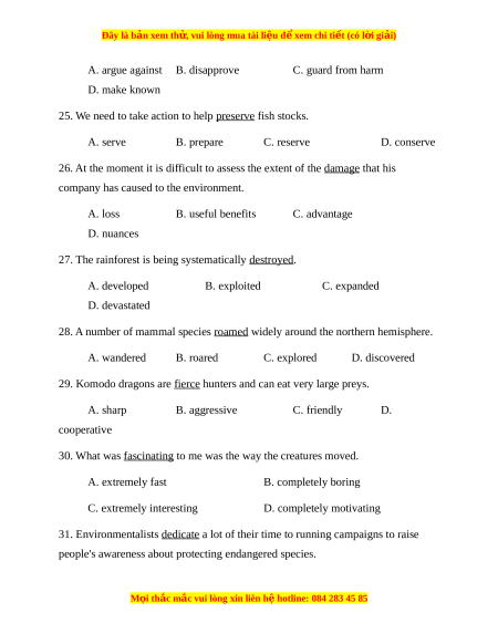 Đây là bản xem th , vu ử i lòng mua tài li u ệ đ xe ể m chi ti t ế (có l i ờ gi i ả ) A. argue against B. disapprove C. guard from harm D. make known