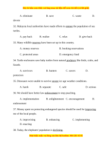 other three in the position of the primary stress in each of the following questions. 6. A. visit B. extinct C. survive D. evolve 7. A. dangerous B. survivor C. habitat D. vulnerable 8. A. convenient B. endanger C. critical D. tradition 9. A. pollution B. collision C. protection D. valuable 10. A. migrate B. giant C. panda D. rhino Part II. VOCABULARY M i