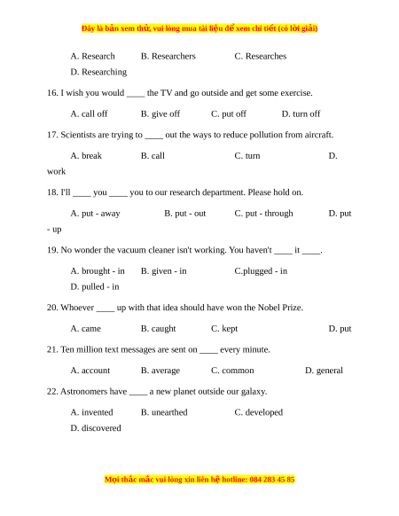 Đây là bản xem th , vu ử i lòng mua tài li u ệ đ xe ể m chi ti t ế (có l i ờ gi i ả ) A. Research B. Researchers C. Researches D. Researching