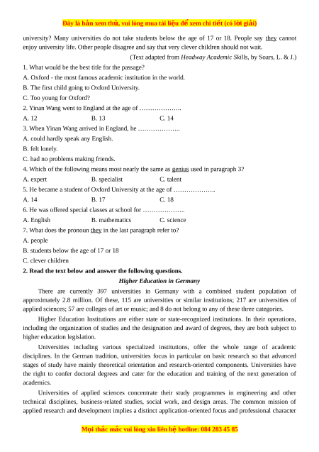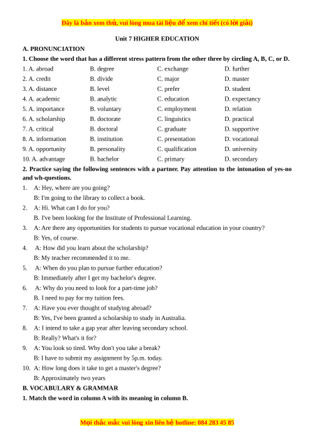ệ đ xe ể m chi ti t ế (có l i ờ gi i ả ) Unit 7 HIGHER EDUCATION A. PRONUNCIATION