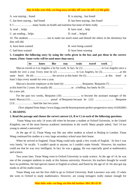 ệ đ xe ể m chi ti t ế (có l i ờ gi i ả ) A. was staying... found B. is staying... has found