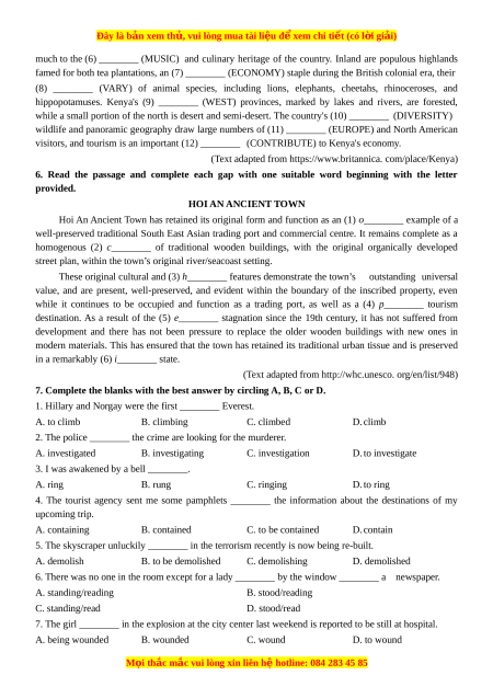 6. Read the passage and complete each gap with one suitable word beginning with the letter provided. HOI AN ANCIENT TOWN