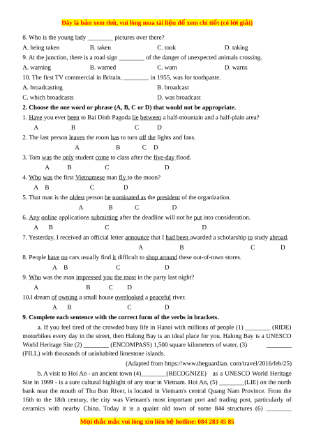 Tài liệu được cập nhật liên tục trong gói này từ nay đến hết tháng 6/2023. Chúng tôi đảm bảo đủ số lượng đề đã cam kết hoặc có thể nhiều hơn, tất cả có BẢN WORD, LỜI GIẢI CHI TIẾT và tải về dễ dàng.