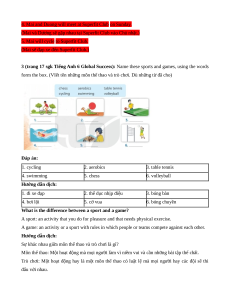 Môn thể thao: Một hoạt động mà mọi người làm vì niềm vui và cần những bài tập thể chất.