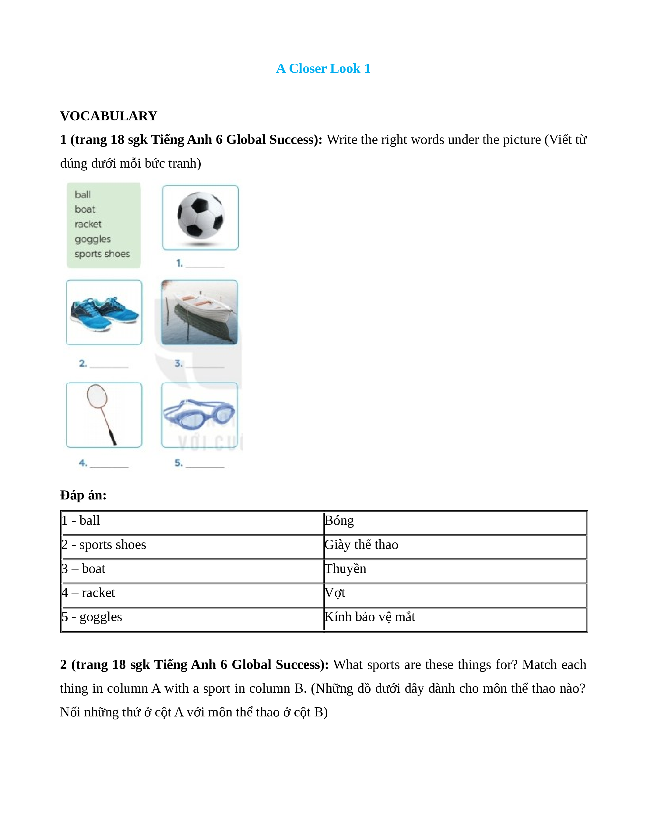 3 (trang 17 sgk Tiếng Anh 6 Global Success): Name these sports and games, using the words