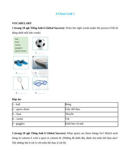 5. Mai will … to Superfit Club. Đáp án: 1. fit 2. gym 3. table tennis 4. club 5. cycle Giải thích: