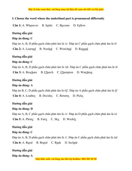 Câu 1: A. Whenever B. Settle C. Become D. Fellow