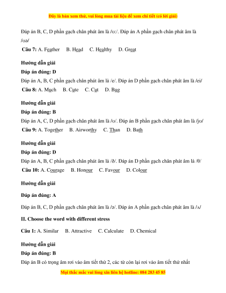 Đây là bản xem thử, vui lòng mua tài liệu để xem chi tiết (có lời giải)