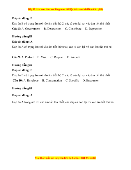 Câu 8: A. Government B. Destruction C. Contribute D. Depression