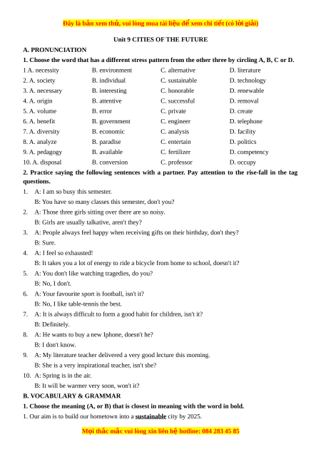 Unit 9 CITIES OF THE FUTURE A. PRONUNCIATION