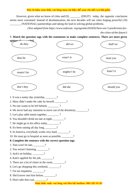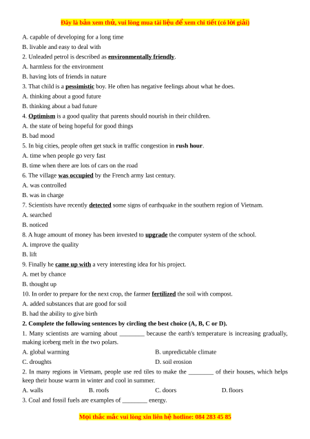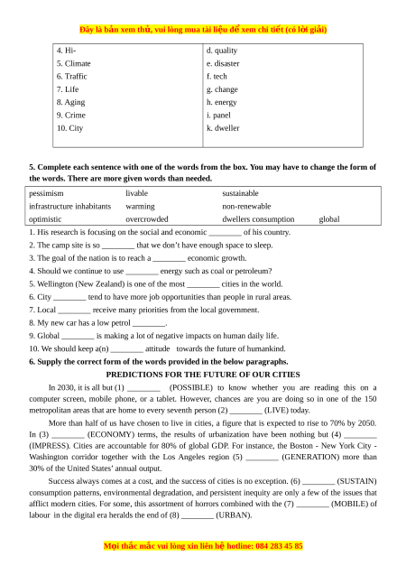 ệ đ xe ể m chi ti t ế (có l i ờ gi i ả ) 4. Hi- d. quality 5. Climate e. disaster 6. Traffic f. tech 7. Life g. change 8. Aging h. energy 9. Crime i. panel 10. City k. dweller