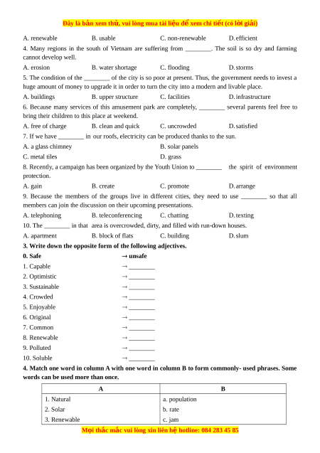 ệ đ xe ể m chi ti t ế (có l i ờ gi i ả ) A. renewable B. usable C. non-renewable D. efficient