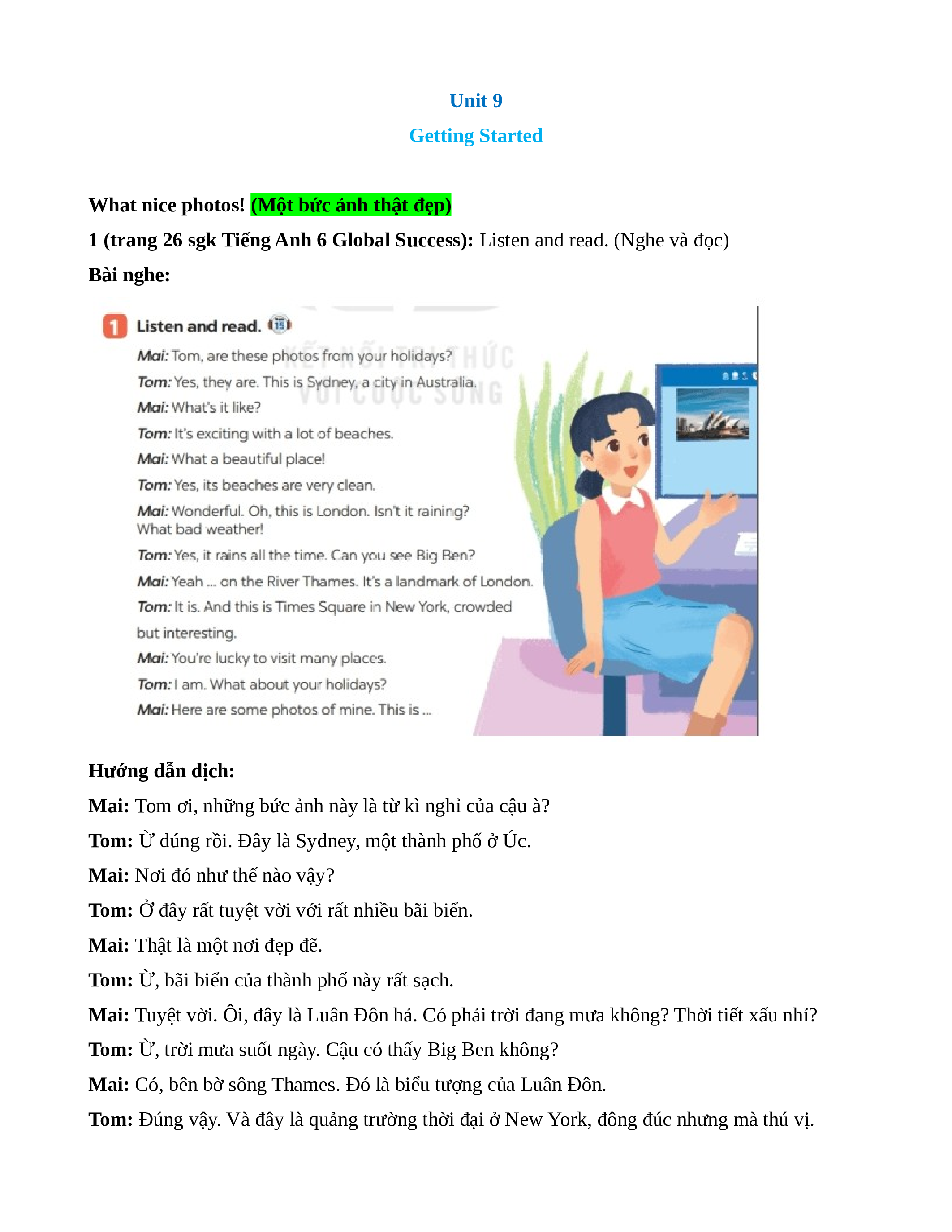 1 (trang 26 sgk Tiếng Anh 6 Global Success): Listen and read. (Nghe và đọc) Bài nghe: Hướng dẫn dịch: