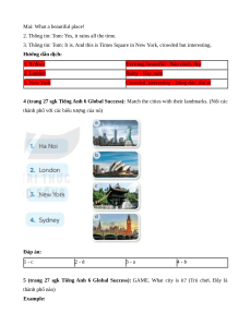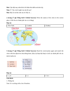 place. (Viết tên các thành phố vào vị trí đúng) Đáp án: 1. New York 2. London 3. Sydney